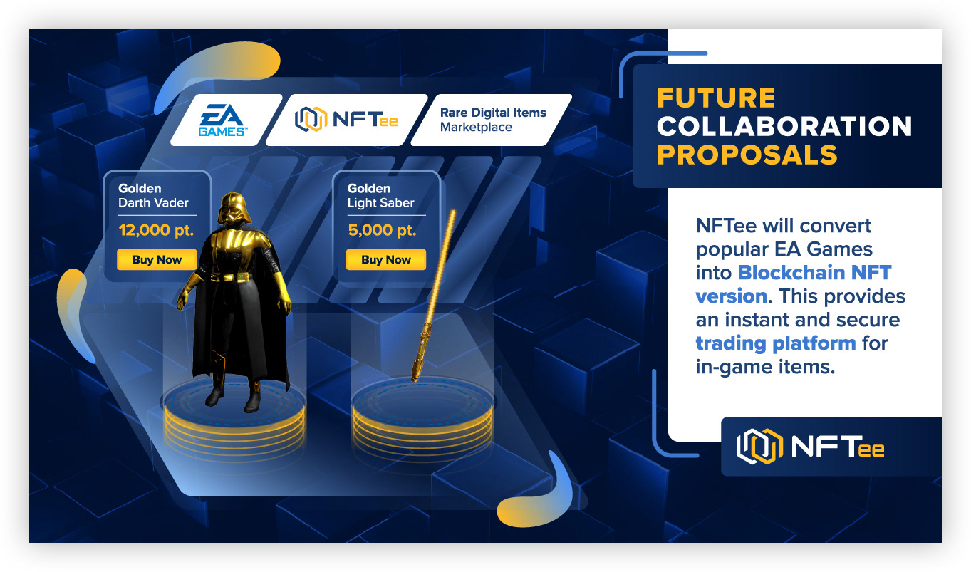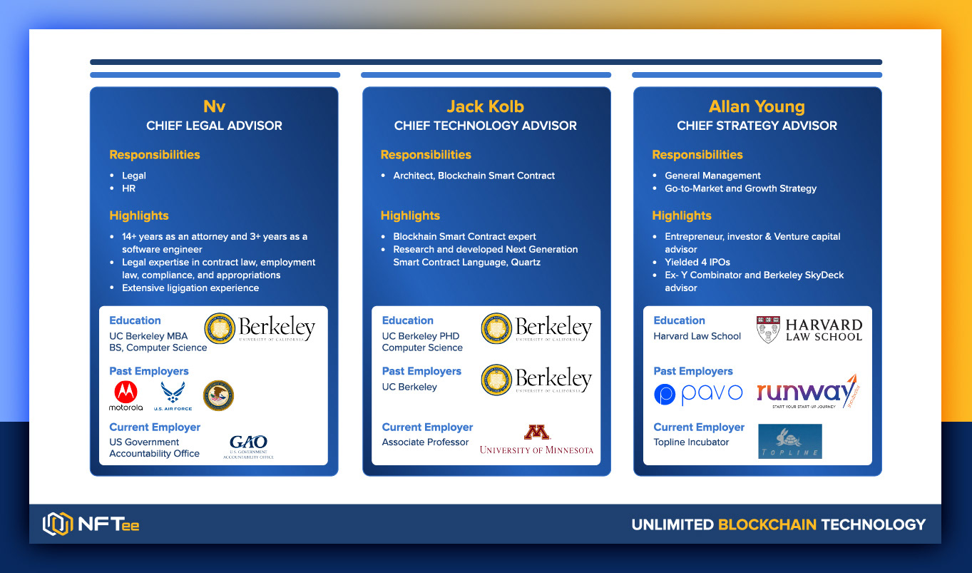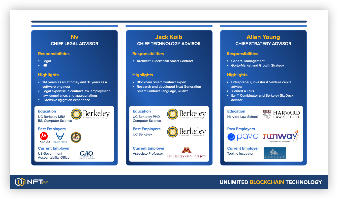 I designed the logo and branding for a startup company called NFTee. I curated presentation slides for the company pitch decks.