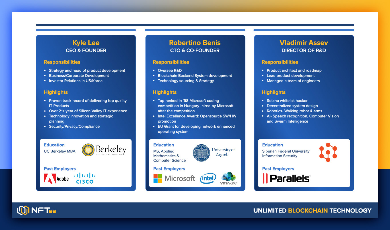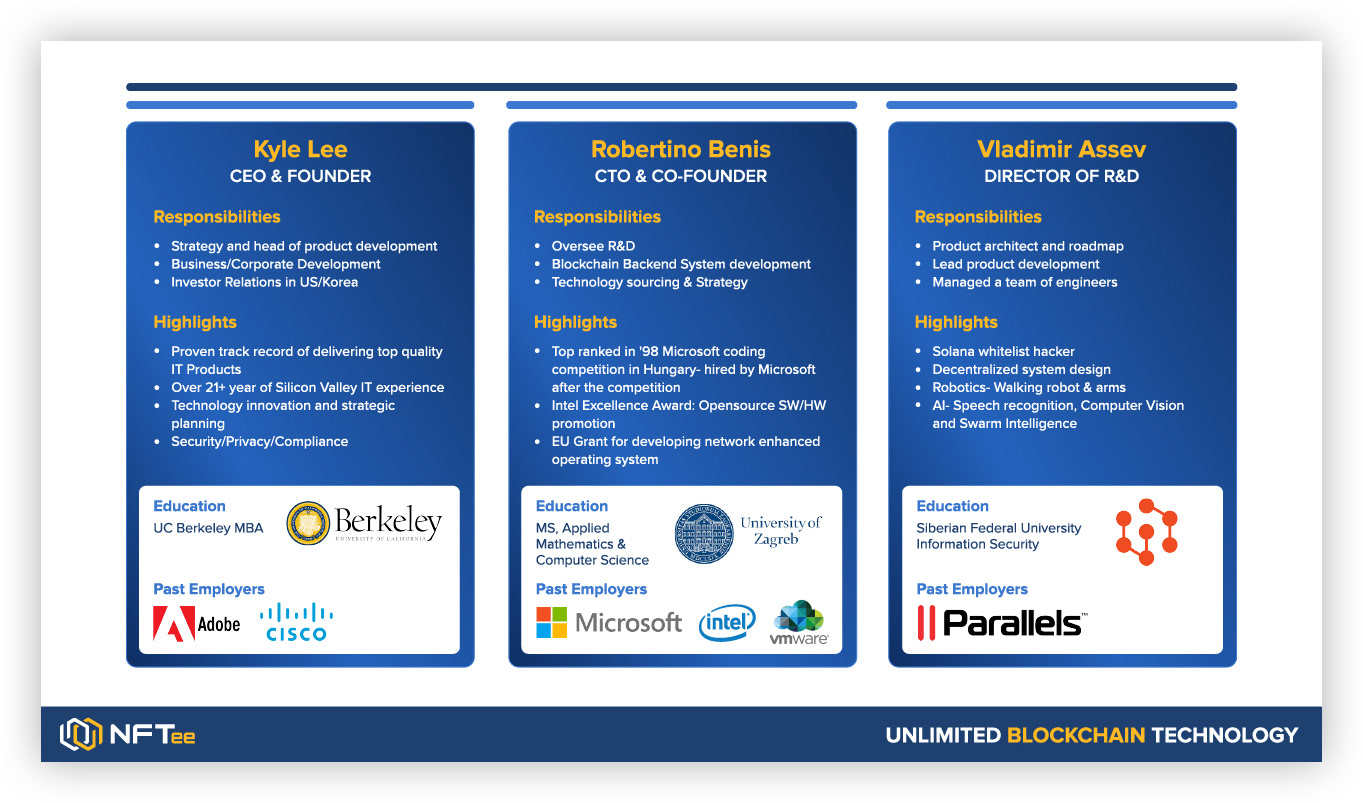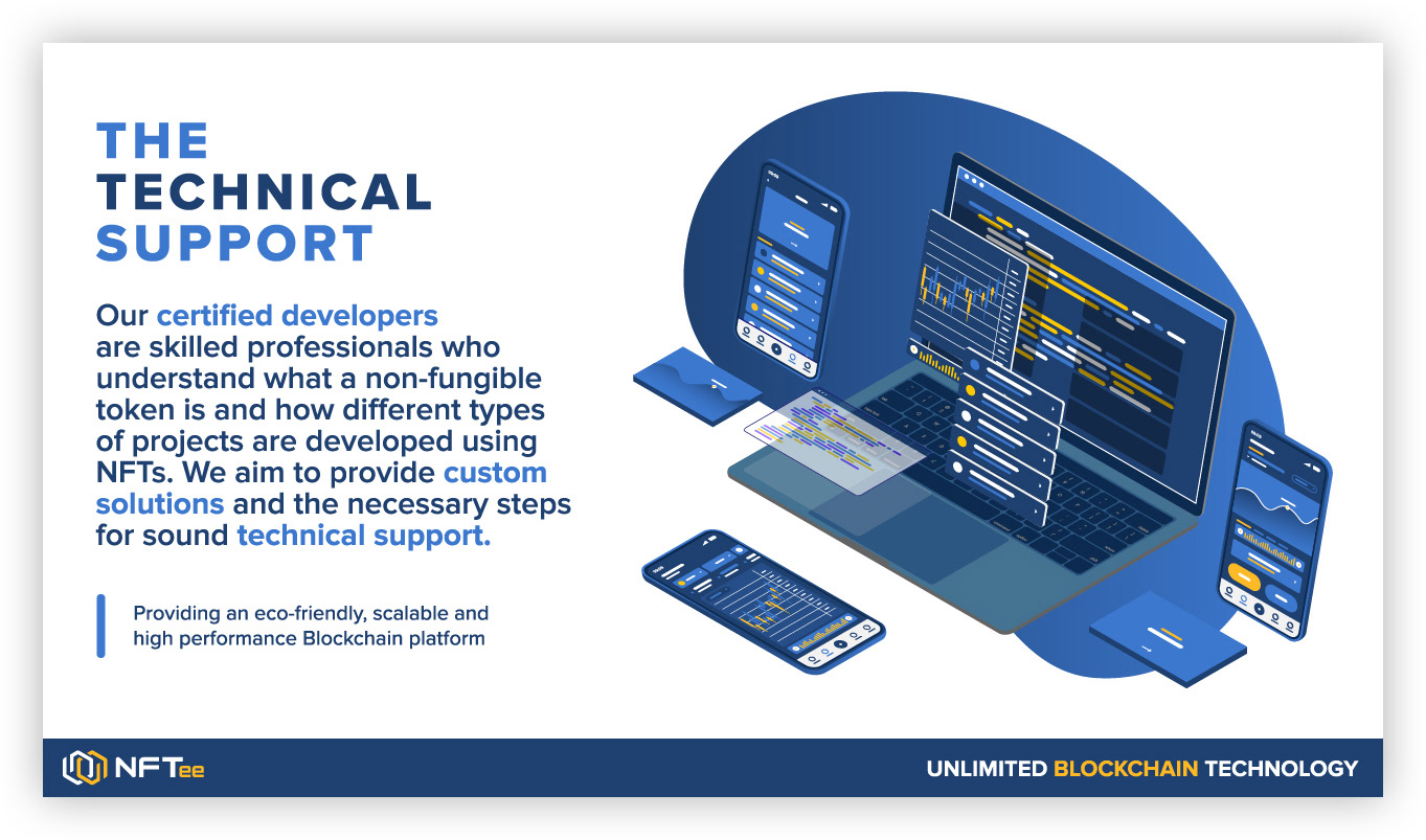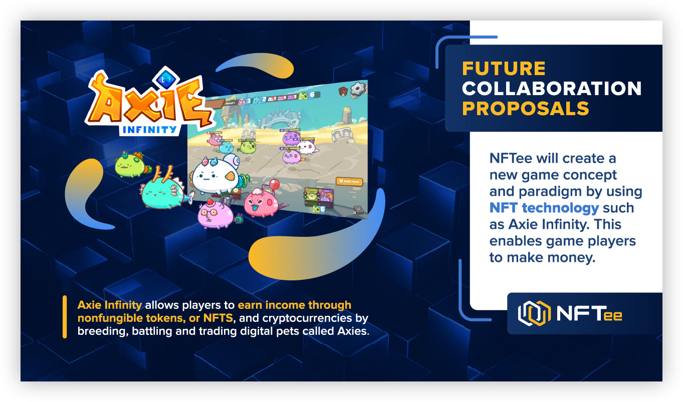I designed the logo and branding for a startup company called NFTee. I curated presentation slides for the company pitch decks.